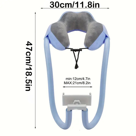 Oreiller de protection pour le cou avec support pour téléphone portable.